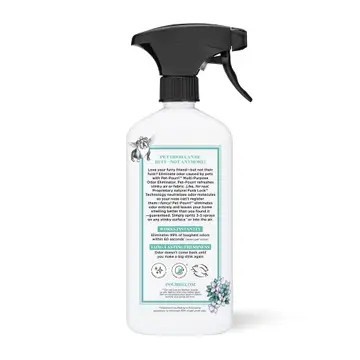 Spray on: air, your car after a ride, couch, dog house, pet beds, pet carriers, puppy pee pads pre-trash, rugs, and other household surfaces our furry friends leave their funky fumes.