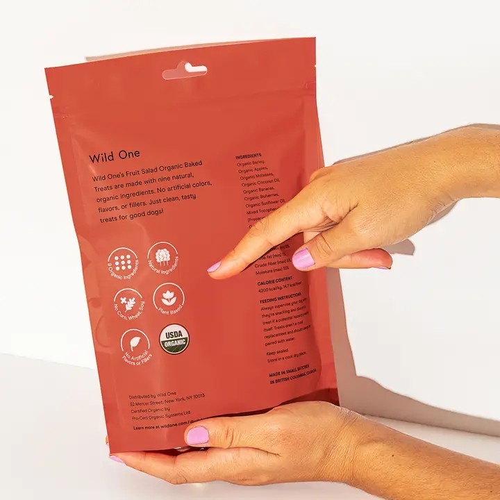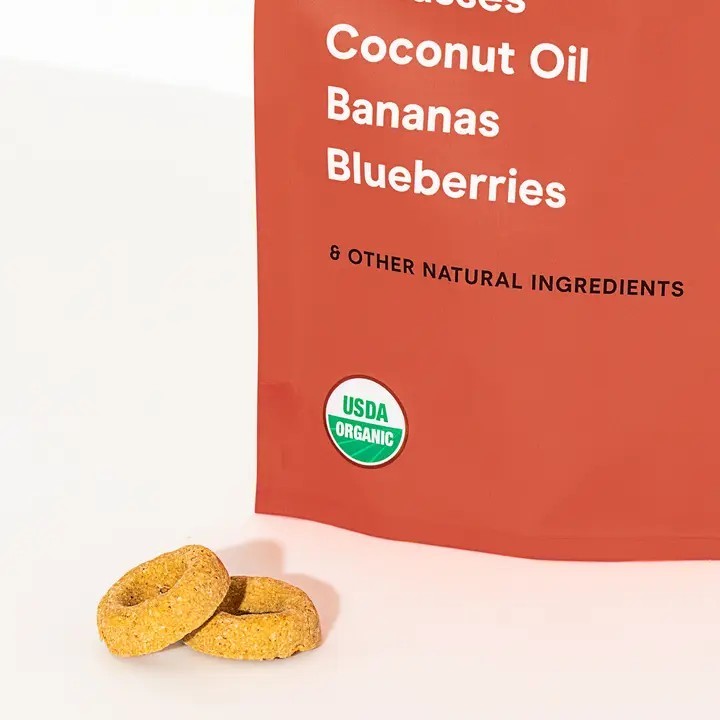 Simply clean and delicious treats for good dogs! Made with just 9 plant-based and Certified USDA Organic ingredients. Contains no artificial colors, flavors, or fillers, and is free of corn, wheat, and soy. Each 8oz. bag contains about 60 treats.