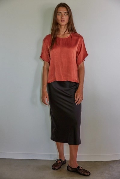 Woven Cupro Viscose Rayon Round Neck Short Sleeve Top